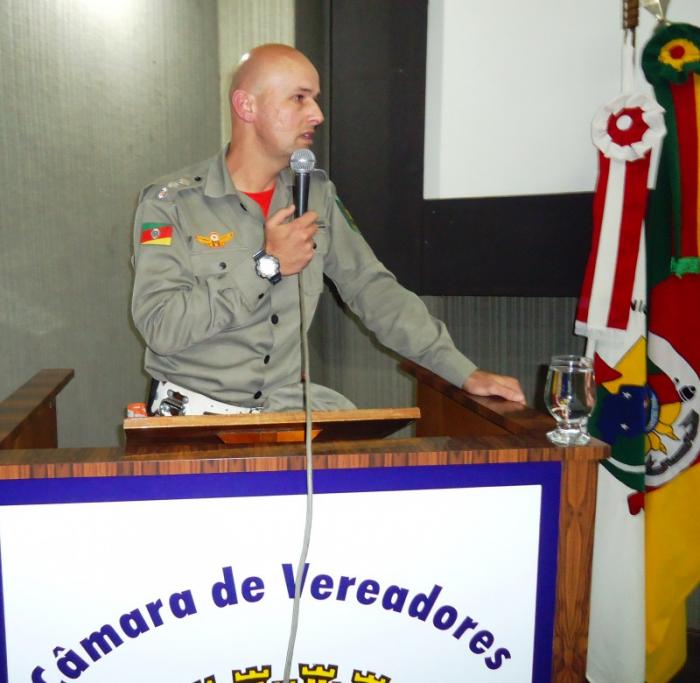 Fez uso da Tribuna Livre, o capitão do Corpo de Bombeiros Cássio Conzatti, para explanar a situação atual da 3ª Seção de Combate a Incêndio do Corpo de Bombeiros do município de Lajeado.