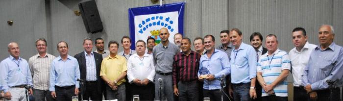 Durante a sessão ordinária do Legislativo, realizada terça-feira (23/04), os vereadores prestaram homenagem aos 102 anos do Clube Esportivo Lajeadense. Parte da direção do Alviazul - presidente Mário Dutra, o vice-presidente Ilvo Poersch -, técnico Flávio Campos e integrantes da comissão técnica estiveram presentes no plenário, onde receberam uma placa comemorativa.