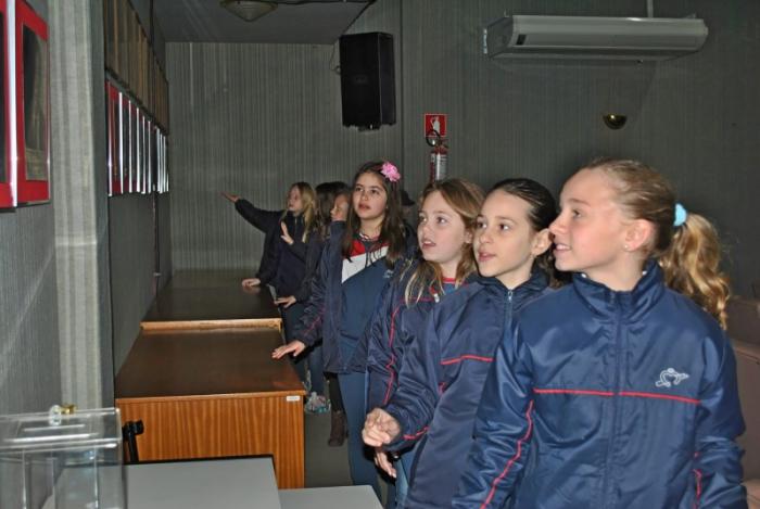 Acompanhados pelas professoras Cleciane Fritzen e Maria Helena Herrmann, aproximadamente 50 alunos do 4º ano do Colégio Madre Bárbara visitaram a Câmara de Vereadores nesta quarta, 26.09. Na visita, os estudantes conheceram sobre o funcionamento da Câmara, assim como sua estrutura e funcionários. Os alunos aproveitaram para esclarecer dúvidas sobre o período eleitoral e saber mais sobre as atribuições dos agentes políticos do município.