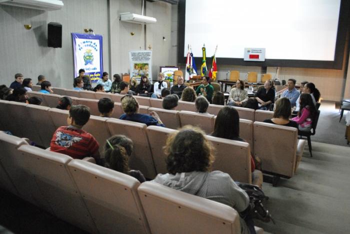 Os Vereadores Hugo Luis Vanzin (PMDB), Antônio de Castro Scheffer (PTB) Sérgio Kniphoff (PT), além de assessores e integrantes do Parlamento Estudantil prestigiaram a reunião.