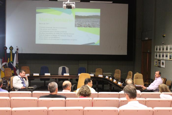 Cumprindo a agenda de reuniões, ocorreu antes da sessão o encontro com o Secretário do Meio Ambiente Luis Benoitt que tratou sobre o aterro sanitário e condições de trabalho do mesmo. Sobre o assunto os vereadores aguardam o projeto para ampliação da área com laudo ambiental que valide a proposta. A próxima reunião será com representantes da Central, Secretaria da Saúde e 16ª Coordenadoria Regional de Saúde no dia 05 de julho às 15h.Data de publicação: 28/06/2017