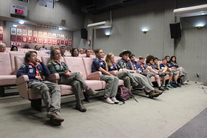 Apreciou-se a presença do Grupo de Escoteiros Tibiquary, que celebra 110 anos de escotismo mundial e acompanhou a sessão nesta terça. Nas votações do dia três ruas foram nomeadas, Rua Mario Dessoy, a Rua A do Residencial Johann no Bairro São Bento, Rua Harry Löeffler, a Rua C, localizada no Loteamento Blumen Garten II do Bairro Universitário e Rua dos Álamos, a Ruas A, localizada no Bairro Montanha.