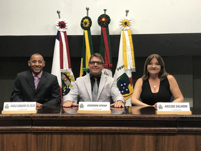 Após a votação dos projetos que entraram nos últimos dias, os vereadores escolheram a Mesa Diretora para o exercício de 2018. Waldir Blau, Ildo Salvi e Mariela Portz se despedem e cedem lugar ao presidente Éder Spohr, vice-presidente Paulo Tóri e secretária Neca Dalmoro. A comunicação e o diálogo foram ressaltados, com a aproximação dos poderes, debates e reuniões que resultaram em ações em prol da comunidade. Além de lembrar as conquistas, os vereadores aproveitaram para agradecer a todos que colaboraram com as atividades legislativas, possibilitando o desenvolvimento do trabalho.