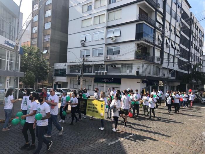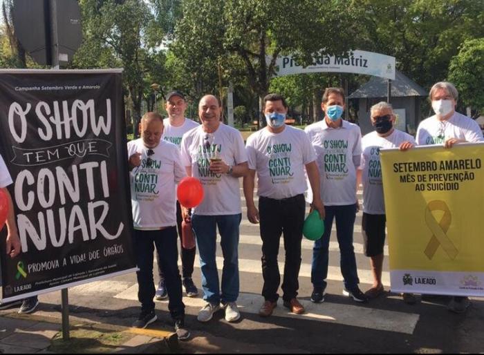 Dezenas de pessoas participaram na manhã do último sábado (25/09) da Caminhada Verde e Amarela, promovida pela Câmara Municipal de Lajeado em conjunto com a Secretaria de Saúde de Lajeado. O objetivo da atividade foi de conscientizar a comunidade sobre a prevenção do suicídio e incentivar a doação de órgãos.