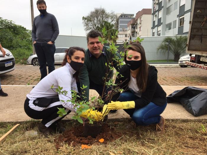 Na ação, realizada nesta sexta-feira (08/10), foram plantadas 100 mudas de árvores nativas em dois pontos da cidade.
