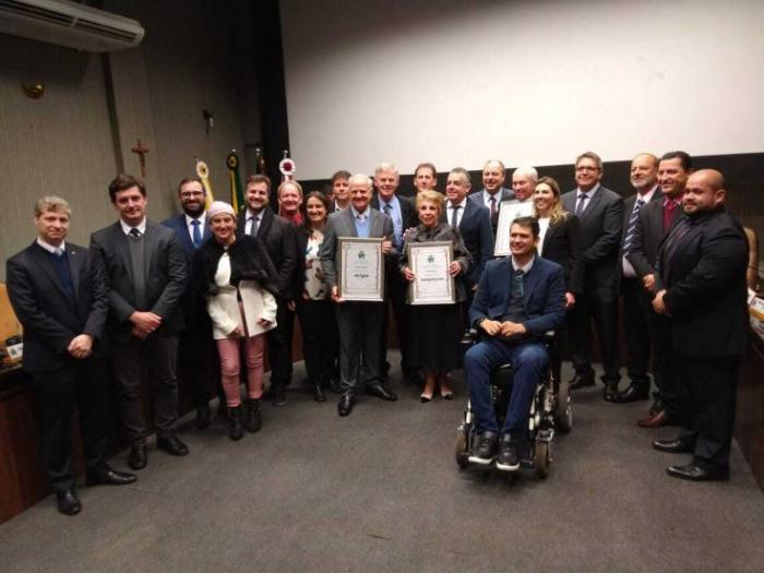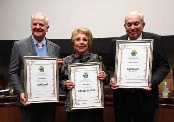 Os agraciados foram os empresários José Zagonel e Rogério Kappler, e a ex-prefeita Carmen Regina Pereira Cardoso.
