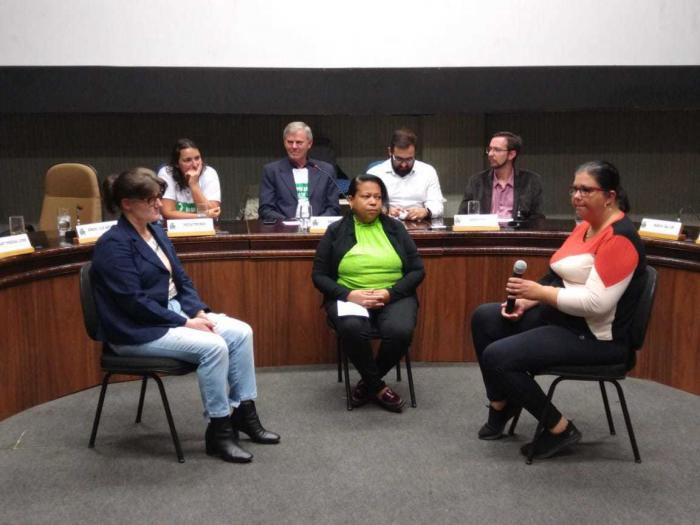 Em seguida, Regina Dias, paciente transplantada que recebeu um rim em 2016, compartilhou sua experiência. “Quando ouvi: chegou a tua vez, eu não acreditei. Eu só tomei um banho e fui. Nem mala eu levei. Parece que não é real quando elas chamam a gente”, resumiu.