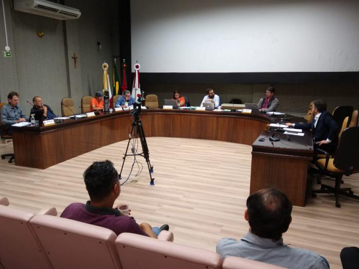 Reunião foi conduzida pelo vereador Alex Schmitt (PP), presidente da Comissão de Justiça, Redação e Decoro Parlamentar.