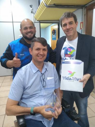 Na ocasião, entregou aos vereadores Márcio Dal Cin (PSDB) e Jones Barbosa da Silva (MDB) uma placa de agradecimento pelo apoio do Poder Legislativo ao projeto que completou 10 anos.
