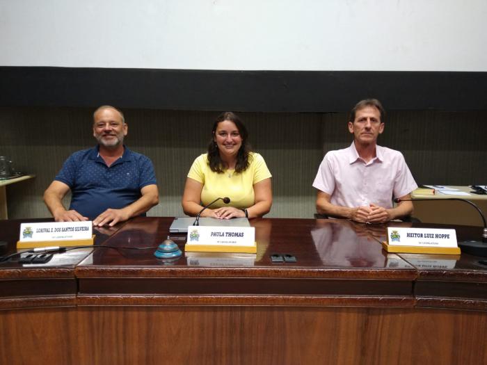 Apenas uma chapa registrou interesse em disputar os cargos. Por 13 votos a favor e duas abstenções, dos vereadores Sérgio Kniphoff (PT) e Carlos Eduardo Ranzi (MDB), a vereadora Paula Thomas (PSDB) foi eleita presidente. O vereador Lorival Silveira (PP), será o vice presidente, e secretário o vereador Heitor Hoppe (PP) .