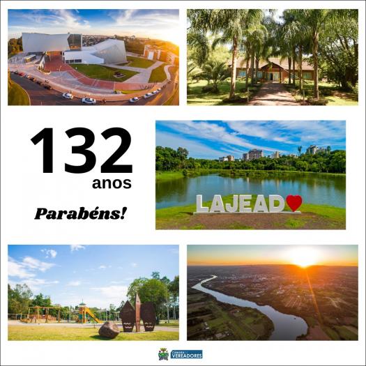 A Câmara Municipal de Vereadores de Lajeado parabeniza a população lajeadense pelos 132 anos da cidade, comemorados hoje, dia 26 de janeiro de 2023.