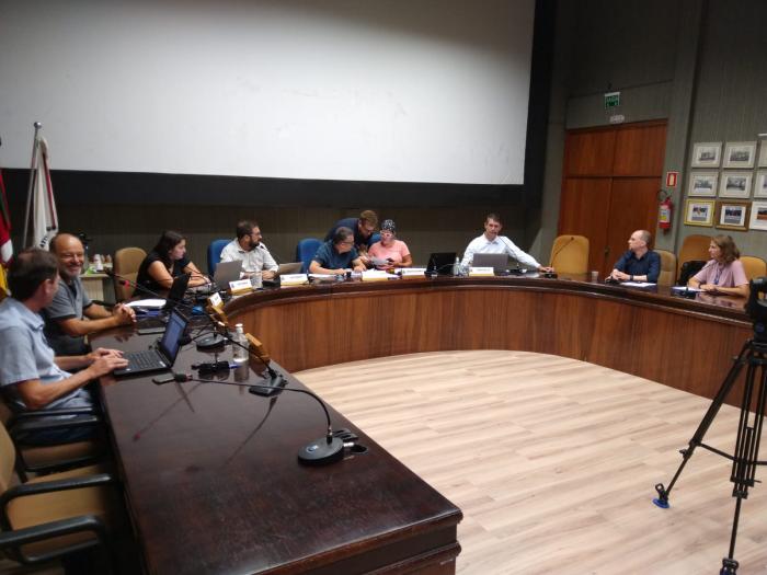 Na manhã desta quarta-feira (22/02), ocorreu a reunião conjunta das Comissões de Justiça, Redação, Ética e Decoro Parlamentar; Finanças e Orçamentos; Obras e Serviços Públicos; e de Educação, Saúde, Cultura, Esporte, Meio Ambiente e Ação Social. Além dos vereadores membros, também participaram da reunião como convidados o Secretário Municipal da Fazenda, Rafael Spengler, e o empresário Leandro Tedesco.