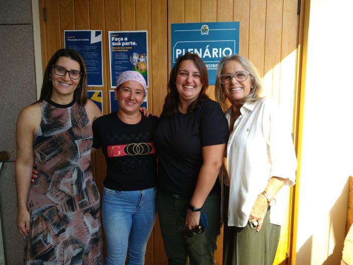Além dos Vereadores membros, também participaram da reunião como convidados, o Presidente da Associação Azul Como o Céu, Rogério de Oliveira, a Delegada Marcia Bernini, e a Coordenadora do Centro de Referência em Atendimento à Mulher (CRAM) de Lajeado, Ana Maria Lazzaron.