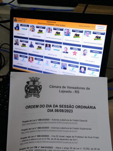 Na sessão ordinária desta terça-feira (08/08), os vereadores da Câmara Municipal de Lajeado aprovaram quatro Projetos de Lei do |Legislativo e do Executivo. Duas proposições com parecer de ilegalidade foram arquivados a pedido dos autores e outras duas tiveram votações adiadas por pedido de vistas.