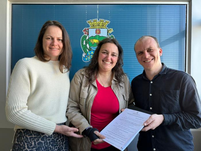 A entrega foi realizada pelo secretário da Fazenda, Rafael Spengler, acompanhando da contadora, Lisane Koch Stoll, a presidente do Poder Legislativo, vereadora Paula Thomas (PSDB), em ato nas dependências da Câmara.