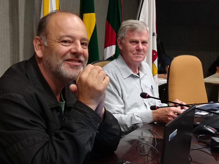 Os representantes da Associação de Moradores do Bairro Jardim do Cedro - Marino Barcé e Ivoni Rufino, também foram ouvidos na reunião acerca do projeto que autoriza a concessão de direito de uso sobre área municipal à Associação Esportiva Jardim do Cedro.