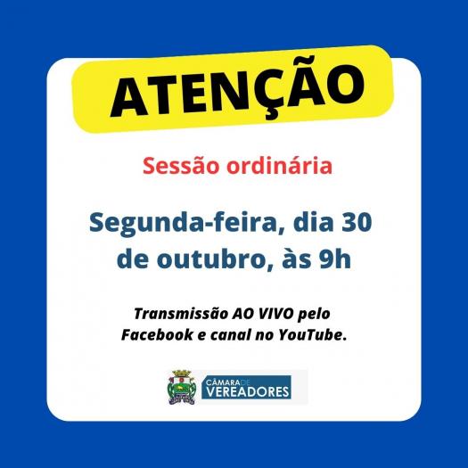 Em virtude da passagem do feriado do Dia da Reforma Protestante, a Câmara de Vereadores de Lajeado, realizará a sua sessão semanal nesta segunda-feira, dia 30 de outubro, com início às 09 h e transmissão AO VIVO pelo Facebook e canal no YouTube.