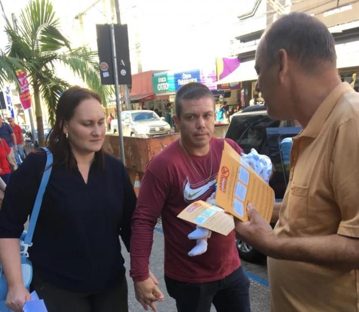 Munidos de panfletos informativos, eles espalharam mensagens sobre prevenção e combate à doença na área central da cidade.