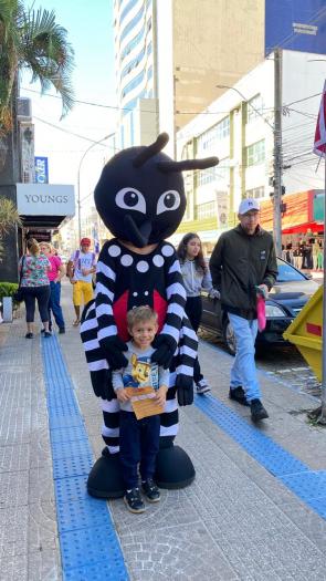 Uma das servidoras se vestiu do vilão Aedes aegypti e ajudou a conscientizar as pessoas sobre como evitar que o mosquito faça morada nas casas e terrenos.