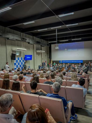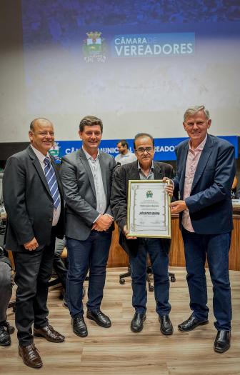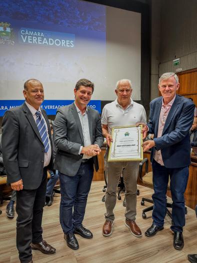 Na noite de 26 de novembro de 2024, o plenário da Câmara de Vereadores de Lajeado foi palco de uma emocionante Sessão Solene para entrega de títulos honoríficos. O evento prestou homenagem a sete personalidades cujas trajetórias estão profundamente ligadas ao desenvolvimento social, cultural, econômico e educacional do município. Sérgio da Fonseca Diefenbach recebeu o Título de Cidadão Lajeadense, enquanto Nestor José Heineck, Ney José Lazzari, João Batista Gravina, Ernany Vicente Bender Junior, Adilvo Battisti e Roberto Lucchese foram condecorados como Cidadãos Beneméritos Lajeadenses.