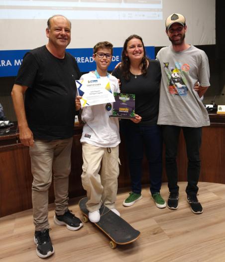 Na sessão da Câmara de Vereadores de Lajeado, do dia 23/12, o skatista João Augusto Rodrigues Segatto recebeu Certificado de Reconhecimento pela conquista do título de Campeão Brasileiro de Street Skateboarding Sub-16, em competição realizada em Natal-RN. João é arroiomeense e tem 13 anos.