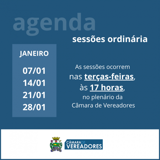 Janeiro não terá recesso. As sessões ocorrem normalmente todas as terças-feiras do mês