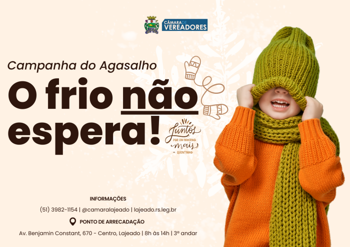 Câmara de Lajeado amplia Campanha do Agasalho em 2025 com arrecadação de alimentos e itens de higiene pessoal.