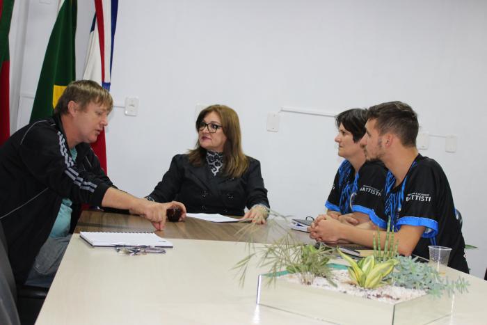 A presidente Neca Dalmoro (PDT) recebeu, na manhã desta terça-feira, dia 23, na Sala da Presidência Selvino Dalmoro, a visita do presidente da Associação de Moradores do Bairro Moinhos D’Água, Paulo Roberto Schneider, o Beto, e dos integrantes do Projeto Semente do Futuro, Vanuza Adriana de Rosso e Jonathan Junior Bomm. Na oportunidade, a comitiva apresentou à presidente o projeto e falou sobre a importância de colocá-lo em prática em várias localidades do município.