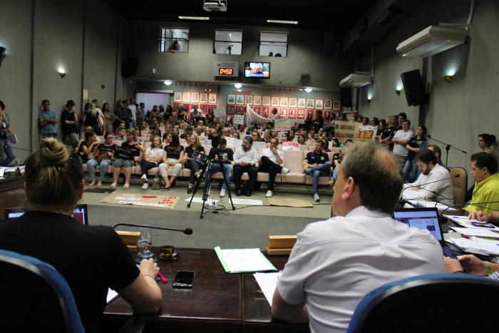 O diretor do Colégio Presidente Castelo Branco, o Castelinho, Marcos Alberto Dal Cin; o escrivão da Polícia Civil, Juliano Clavé e a servidora da Saúde, Eliana Cattoi usaram a tribuna livre para falar sobre o assunto e pedir o apoio dos vereadores nessa luta contra o projeto. Servidores com cartazes e balões lotaram o Plenário.