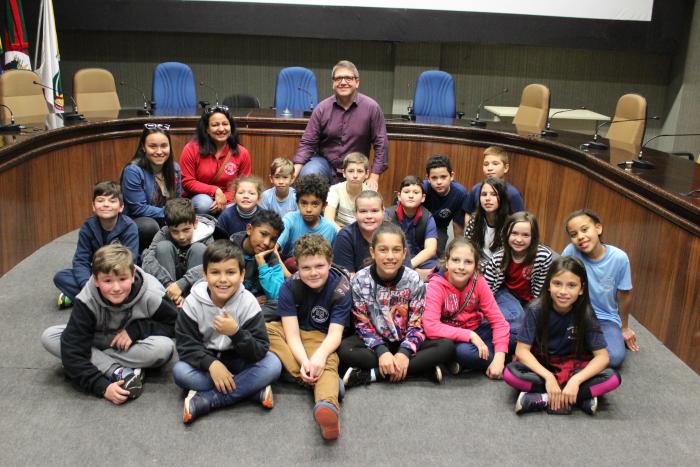 O presidente da Casa, vereador Eder Spohr (MDB) recebeu, na tarde desta quarta-feira, dia 5, os alunos da Escola Municipal D. Pedro I, do Bairro Jardim do Cedro.