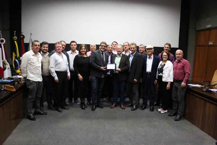 Após a sessão ordinária, os vereadores prestaram uma homenagem à Arla Cooperativa Ltda, pela passagem de seus 80 anos. Uma placa foi entregue ao presidente Orlando Stein e ao gerente-geral da unidade, Breno Ely. Na oportunidade, os homenageados falaram sobre a trajetória da Arla, destacando o crescimento e fortalecimento da marca ao longo das décadas, o compromisso com o produtor rural e com os associados, além dos constantes investimentos para melhor atender seus clientes.