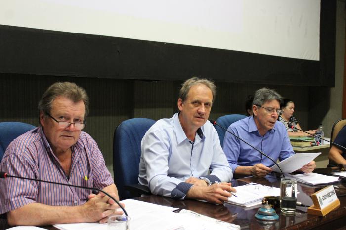 Devido a um problema de saúde, a presidente Neca Dalmoro (PDT) está afastada do cargo. Desta forma, o vice Sergio Rambo (PT) presidiu a sessão ordinária desta semana ao lado dos colegas Sérgio Kniphoff (PT) e Waldir Gisch (PP).