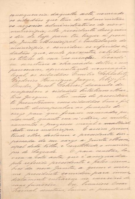 "Cabia ao Conselho providenciar a execução das eleições municipais: estabelecer a Lei Eleitoral municipal; dividir o território em seções eleitorais; indicar data e local; elegeras comissões distritais destinadas à apuração dos votos; declarar os eleitos conferindo-lhes o diploma; dar posse aos eleitos". - Trechos do Livro Lajeado I de José Alfredo Schierholt